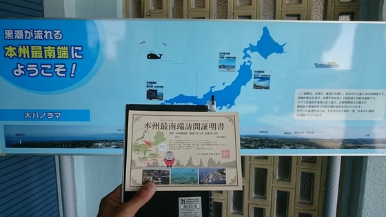 今回、ナビを使いました。北海道で使えなかったのは、シガーソケット部の基盤上のコイルが破断していたからでした。はんだ付けして以来、順調です。千代崎から潮岬へナビを設定すると、12:45到着でした。いやいや、かかりすぎじゃ? ん?下道と高速で平均45km/h、休憩で30分かかるとして、12時? あながち間違いではない? 日没を琵琶湖でとの期待が、日没までに五条へとの任務に変わりました。「だからよ、どういう計算をしてるわけ?」の大泉洋のお叱りが聞こえました。